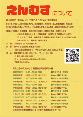 【申込先】 随時、図書館貫井北分室へ直接または図書館HPお問合せフォーム、お電話(042-385-3561)でお申込みください。